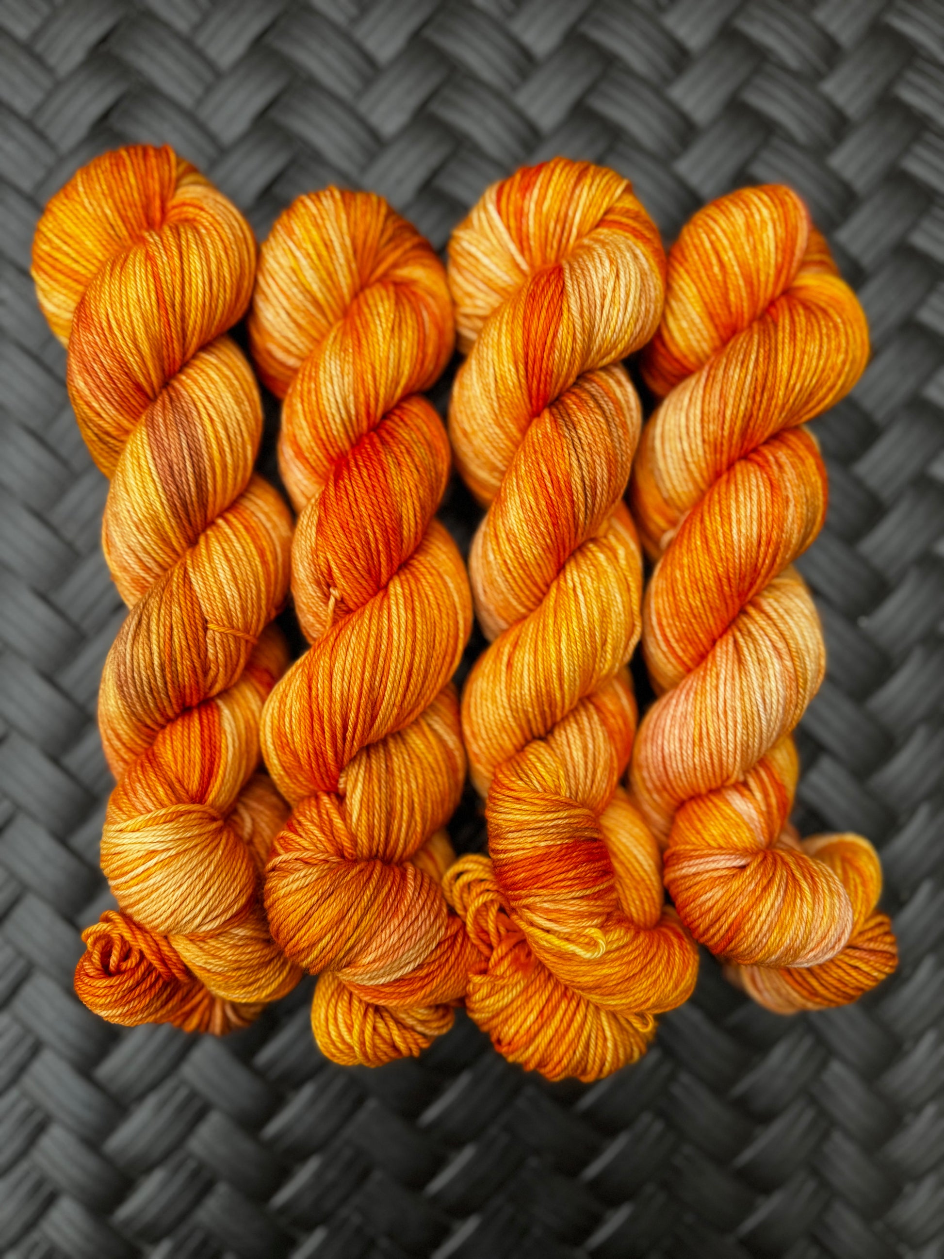 This listing is for one 100g skein/hank of hand dyed sock yarn. It is a 4 ply blend of 75% superwash merino and 25% nylon in DK weight at 245yd per 100g. Note: pictures may show more than one skein.